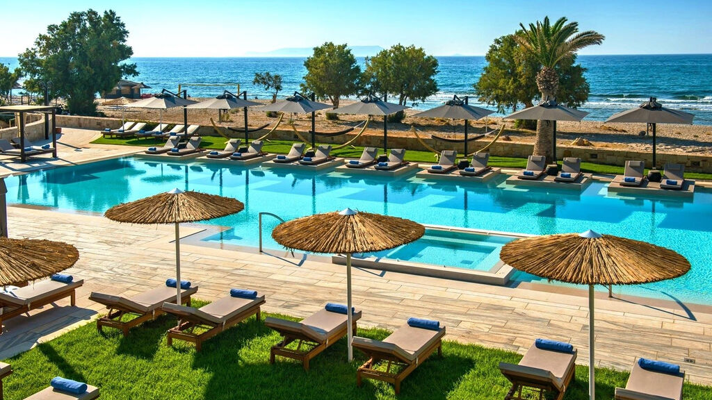 Poloha hotelu:V klidné části letoviska Anissaras, hned u písčito-oblázkové pláže. Nejbližší centrum s možnostmi nákupů vzdáleno cca 1,5 km. Letiště Heraklion vzdáleno cca 22 km.
