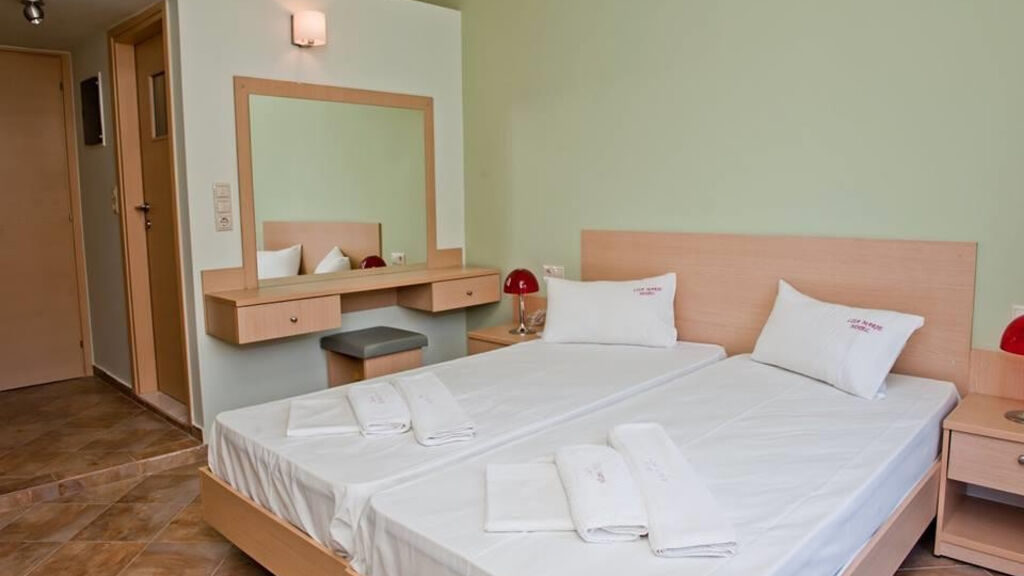 - Dvoulůžkový pokoj, Promo, Boční výhled na moře: nezrekonstruované pokoje, pokoje umístěné ve vedlejší starší budově cca 50 metrů od hlavního areálu, jednoduché ubytování za výhodnější ceny