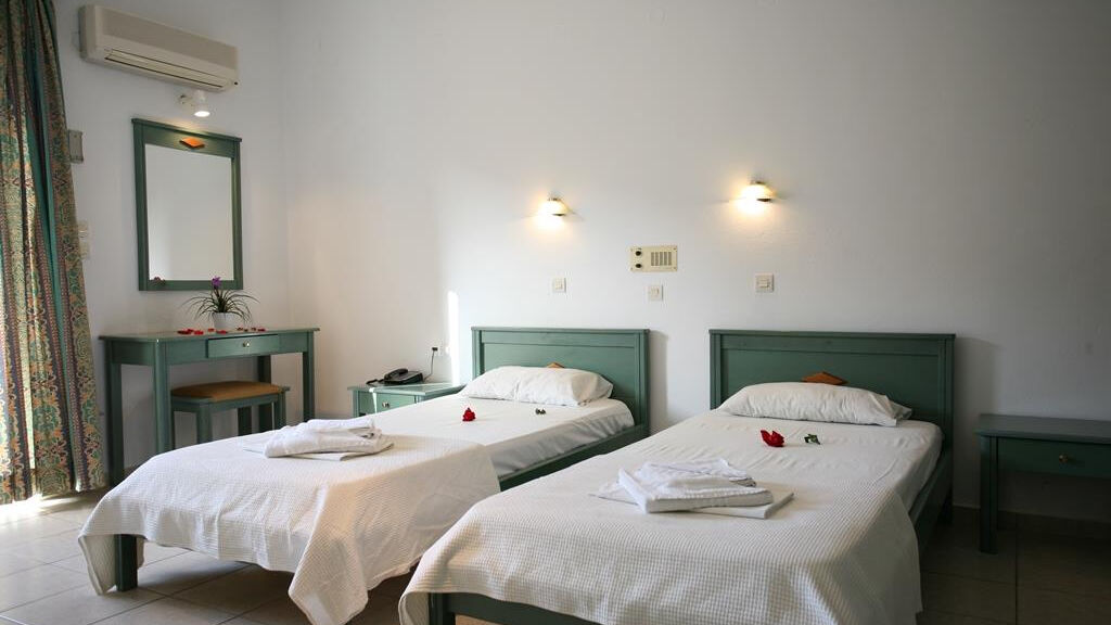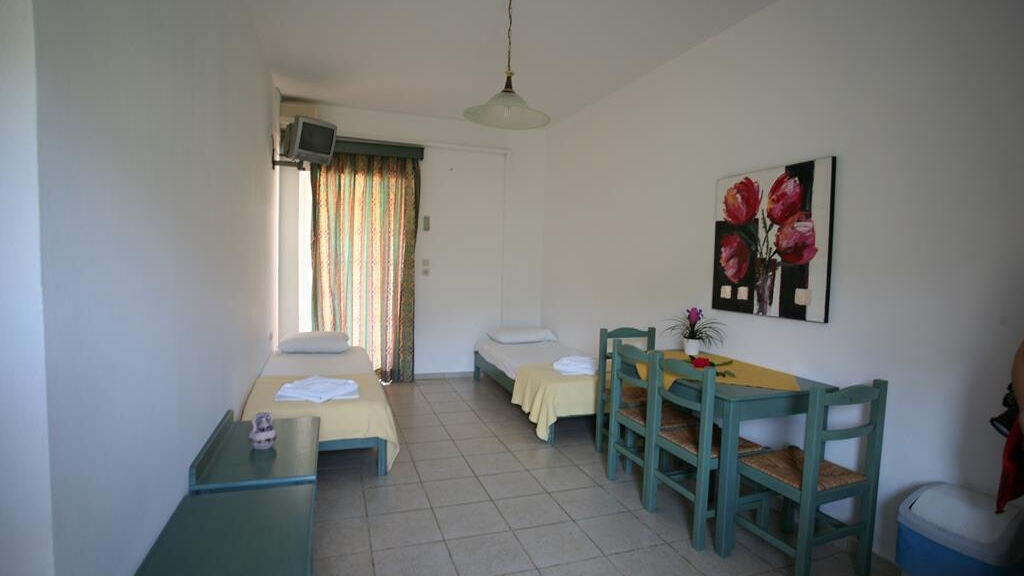 dvoulůžková studia s možností přistýlky, dvoulůžková studia s možností až dvou přistýlek, apartmány až pro 5 osob (2 místnosti), koupelna s toaletou, kuchyňský kout (lednice, vařič, základní nádobí), SAT/TV, Wi-Fi, klimatizace (poplatek cca 6 €/den), trezor (poplatek cca 2,5 €/den), balkon nebo terasa,