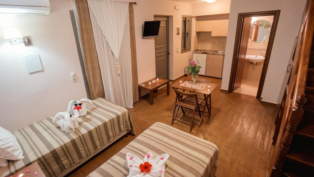 Základní informace:Malý rodinný hotel Flamigos se nachází nedaleko města Chania, pouhých 200 metrů od krásné písečné pláže. Nabízí ubytování v jednoduše zařízených studiích a apratmánech a v zahradě naleznete bazén s lehátky a slunečníky zdarma. Svou polohou je hotel vhodný pro poznávaná západní části ostrova a pro návštěvu města Chania.