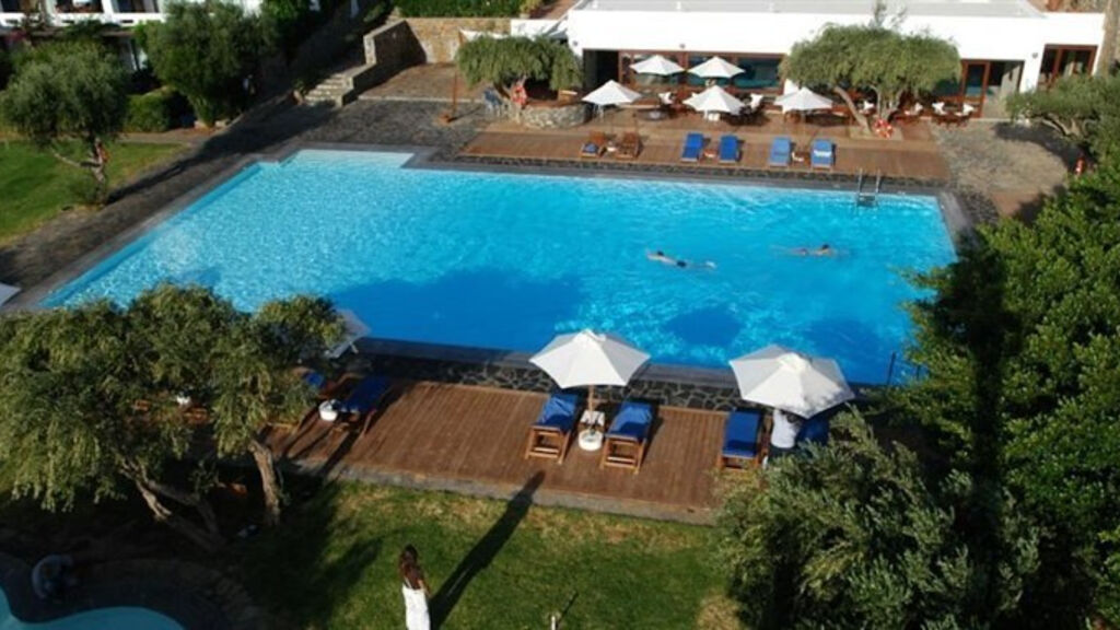 Komplex hotelových pokojů, suit a vil se soukromými bazény vystavěný v typickém krétském stylu, situován přímo kolem menšího zálivu u písečné pláže.