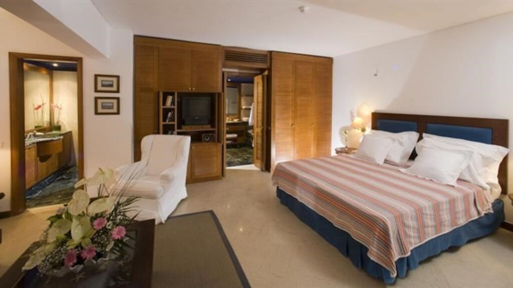 klimatizované dvoulůžkové pokoje s možností přistýlky, mramorová koupelna s WC, vysoušeč vlasů, koupací pláště, pantofle, SAT/TV, CD přehrávač, telefon,wifi, minibar, trezor, balkón, terasa, zapůjčení DVD na vyžádání