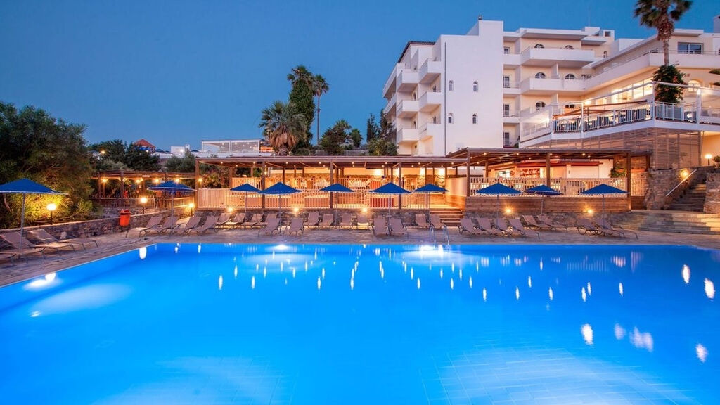 Hotelový komplex postavený v tradičním krétském stylu, se skládá z hlavní budovy a bungalovů, umístěných v nádherné udržované zahradě. Od centra vesničky Elounda je vzdálen cca cca 2 km, cca 10 km od Aghios Nicolaos a cca 200 m od soukromé pláže. Je ideální pro všechny věkové kategorie, zejména však pro rodiny s dětmi. Letiště Heraklion je ve vzdálenosti cca 65 km.