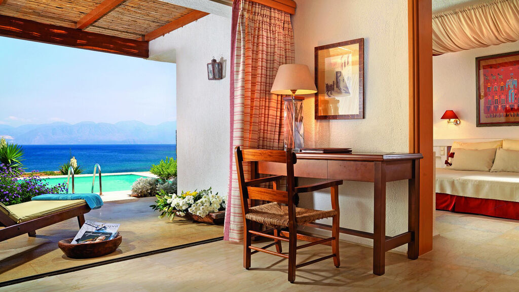 Hotel Elounda Mare byl jako první v Řecku roku 1987 oceněn prestižní asociací Relais & Châteaux®. Nabízí luxusní ubytování s nádherným výhledem na záliv Mirabello, oceňované lázeňské centrum, špičkové restaurace a celou řadu volnočasových aktivit. Bíle vymalované pokoje a apartmá jsou elegantně zařízené v jemných tónech, které vytvářejí klidnou atmosféru. Bungalovy jsou obklopeny nádvořími plnými buganvilií a mají soukromé bazény.