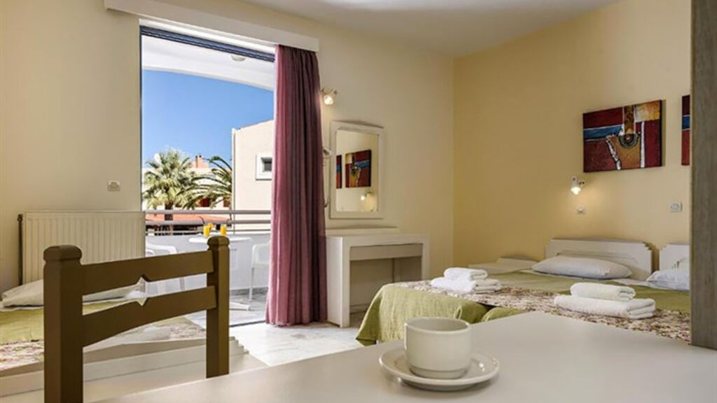 dvoulůžkové pokoje Promo s možností přistýlky (pokoje jsou vybaveny shodně jako standardní pokoje, mohou být situovány v méně příznivé poloze), dvoulůžková studia s možností přistýlky, apartmány až pro 4 osoby (1 místnost), koupelna s toaletou, fén, kuchyňský kout (vařič, lednice, rychlovarná konvice, základní nádobí), klimatizace, trezor (za poplatek cca 2 €/den), SAT/TV, telefon, balkon nebo terasa,