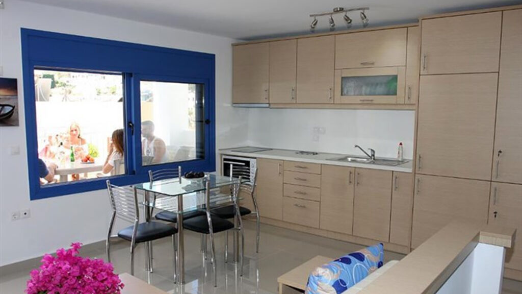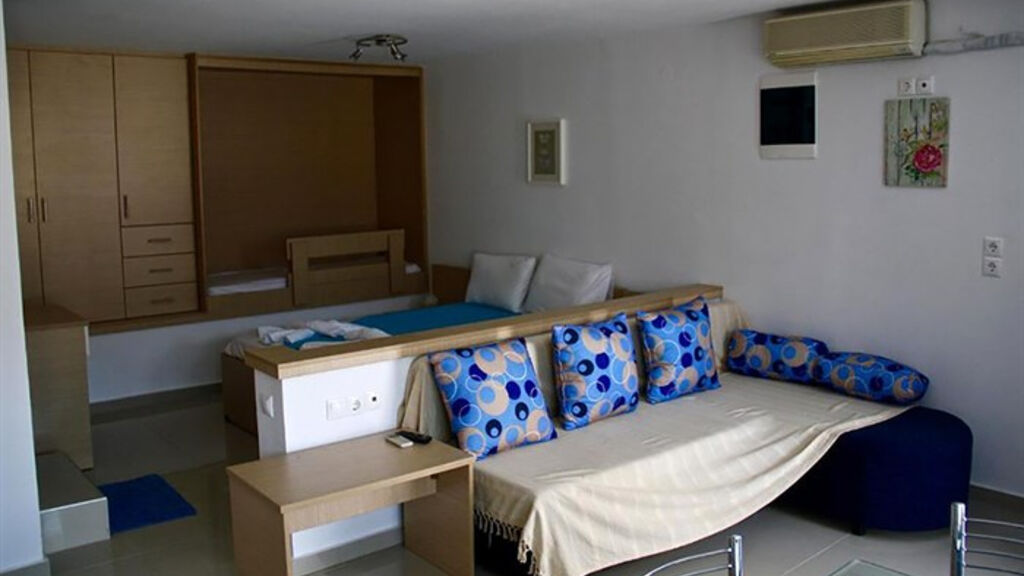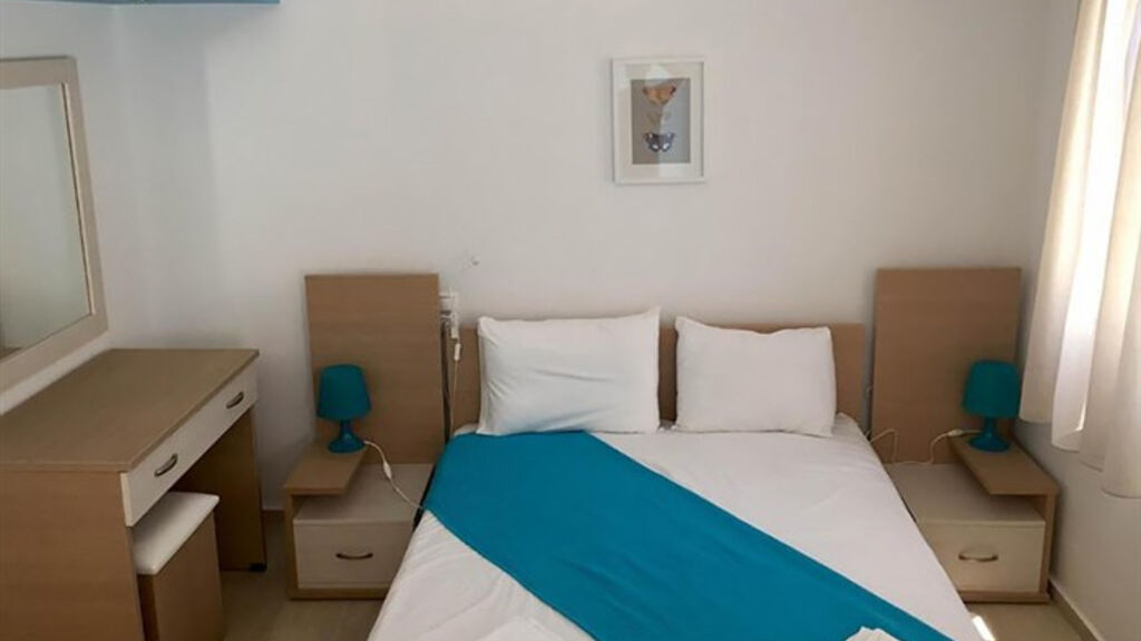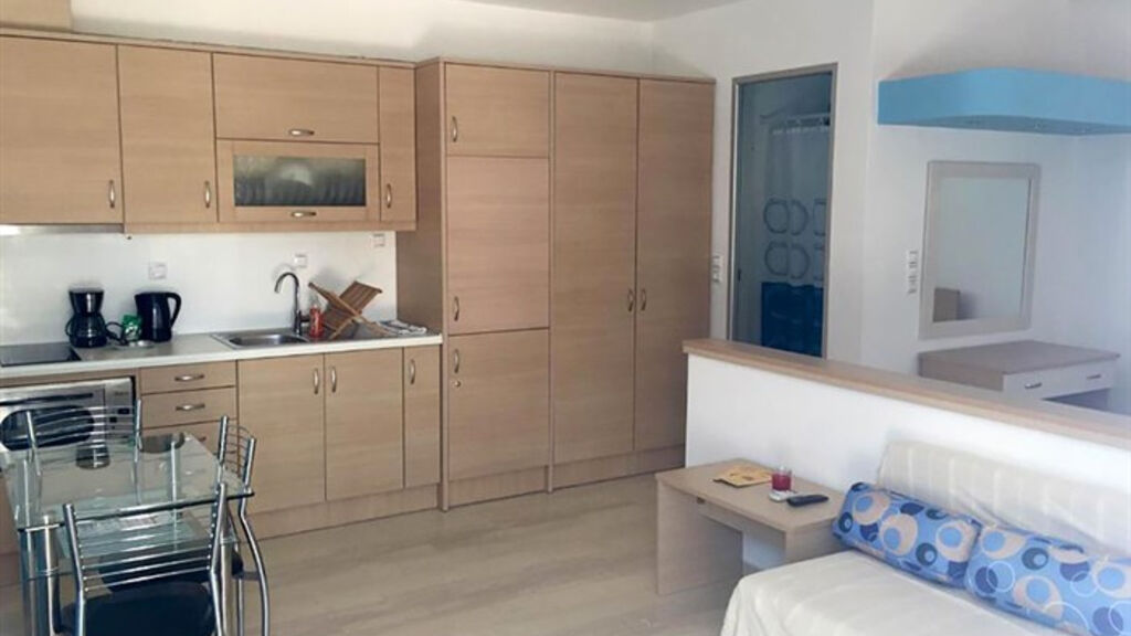 dvoulůžková studia , apartmány až pro 4 osoby (2 místnosti), koupelna s toaletou, fén, kuchyňský kout (vařič, lednice, varná konvice, základní nádobí), klimatizace, trezor , SAT/TV, Wi-Fi, balkon nebo terasa, dětská postýlka na vyžádání zdarma,