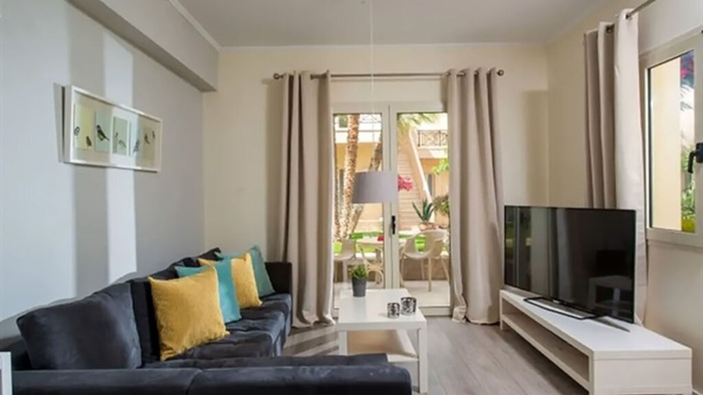 dvoulůžková studia , apartmány až pro 4 osoby (2 místnosti), koupelna s toaletou, fén , kuchyňský kout (lednice, vařič, rychlovarná konvice, základní nádobí), SAT/TV, Wi-Fi, telefon, trezor (za poplatek cca 21 €/týden), klimatizace (za poplatek cca 8 €/den), balkon nebo terasa,