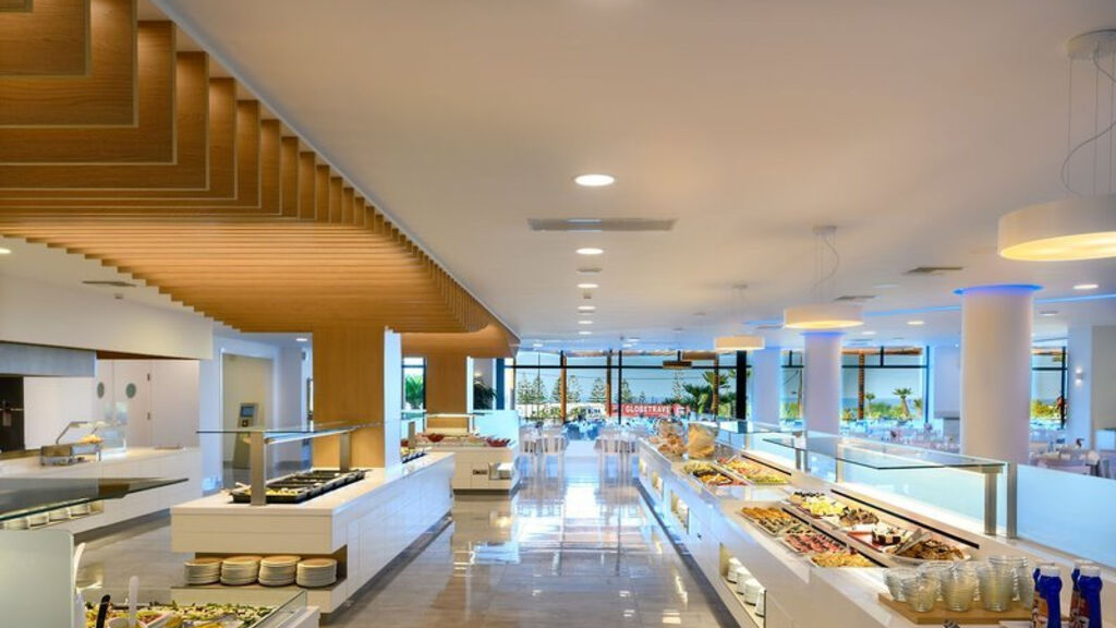 Snídaně, obědy a večeře formou pestrého bufetu. Pozdní snídaně, různé svačiny a zmrzlina během dne, káva/čaj a pečivo odpoledne. Fakultativně 1x za pobyt večeře v řecké nebo italské à la carte restauraci (po rezervaci). Místní a výběr dovážených nealkoholických a alkoholických nápojů v ceně od 10:30 do 22:30.