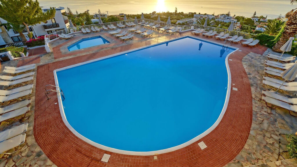 Základní informace:Hotel se nachází na okraji města Hersonissos. Je postaven na vrcholu kopce a nabízí překrásný výhled na záliv, který se rozprostírá pod ním. Díky své poloze kombinuje harmonickým způsobem možnost užít si přírodní prostředí a zároveň být na dosah pláže a centra města Hersonissos. Hotel je postaven v tradičním krétském stylu a skládá se z malých bílých bungalovů v udržované zahradě. Doporučujeme všem, kteří chtějí zažít odpočinkovou dovolenou, ale zároveň být v blízkosti rušného centra.