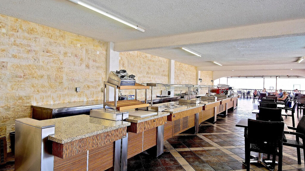 - Hlavní restaurace: 7.00–10.00 snídaně formou bufetu, 18.30–21.00 večeře formou bufetu. U snídaně filtrovaná káva, čaj, voda, u oběda nealkoholické nápoje, pivo, víno, káva, čaj