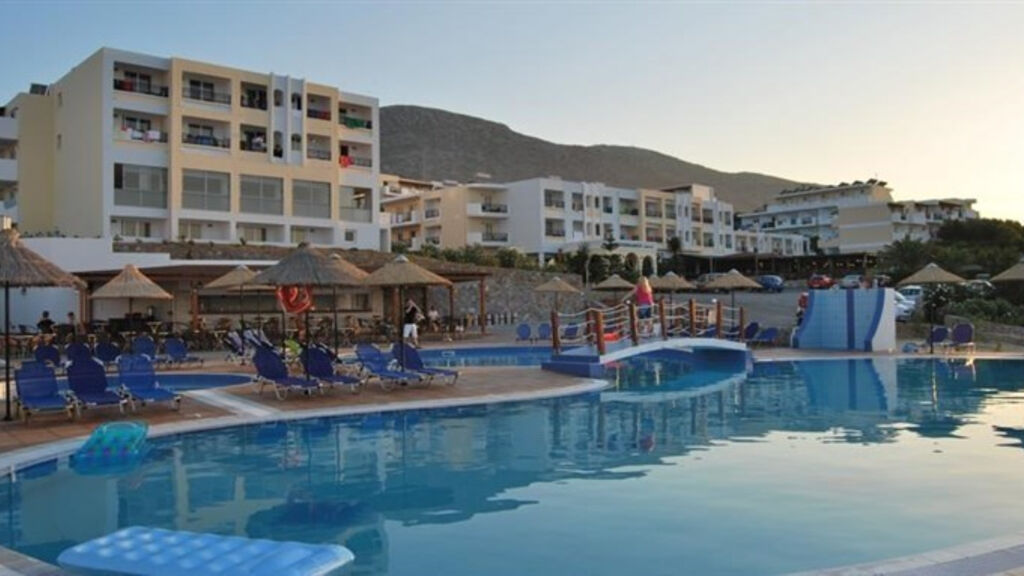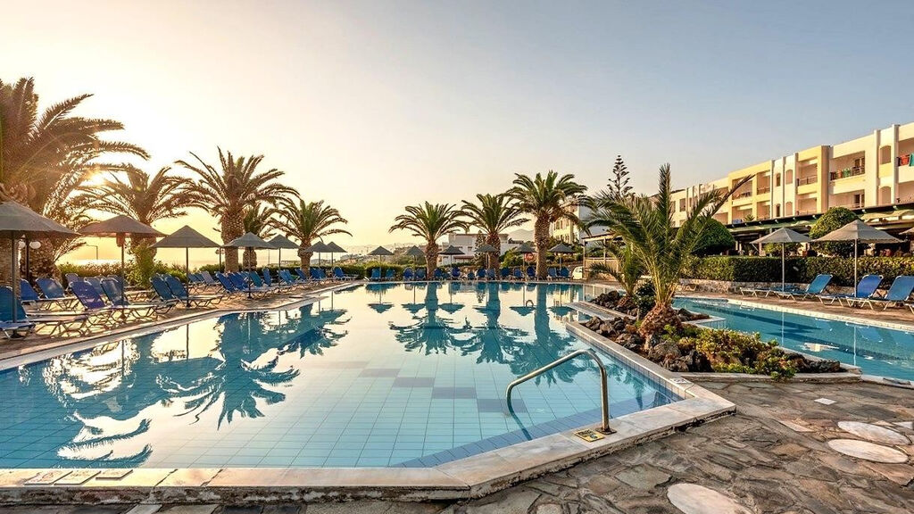 Vybavení hotelu:Hlavní a několik vedlejších budov. Vstupní hala s recepcí, restaurace, lobby bar, TV místnost, konferenční místnost, minimarket. Venku 2 bazény se slanou vodou, bazén pro děti s miniaquaparkem, bazén se skluzavkami, bar u bazénu, terasa na slunění, lehátka a slunečníky zdarma.