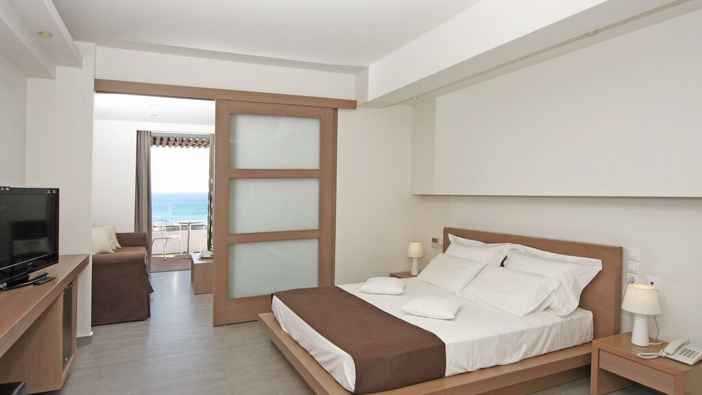 Vzdálenosti: pláže: 0 m u pláže, letiště: 100 km Heraklion, centra: 0.8 km, nákupních možností: 0 m v hotelu,