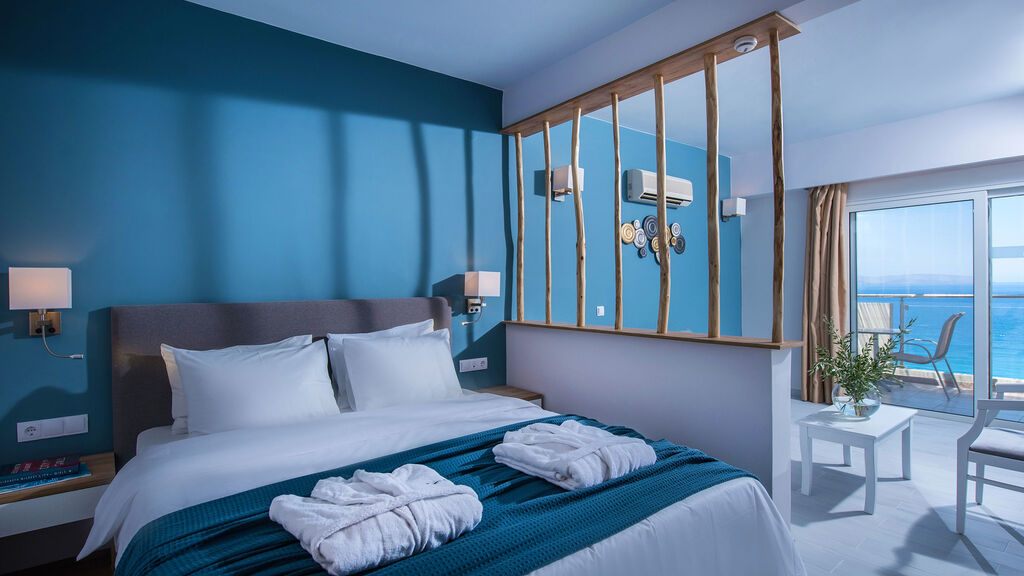 Dvoulůžkové pokoje s možností jedné přistýlky s vlastním příslušenstvím (koupelna, vysoušeč vlasů, WC), klimatizací, SAT/TV, telefonem, chladničkou, trezorem (za příplatek) a balkonem nebo terasou. Za příplatek výhled na moře nebo pokoje Superior se dvěma přistýlkami, setem na přípravu kávy a čaje, županem a papučemi.