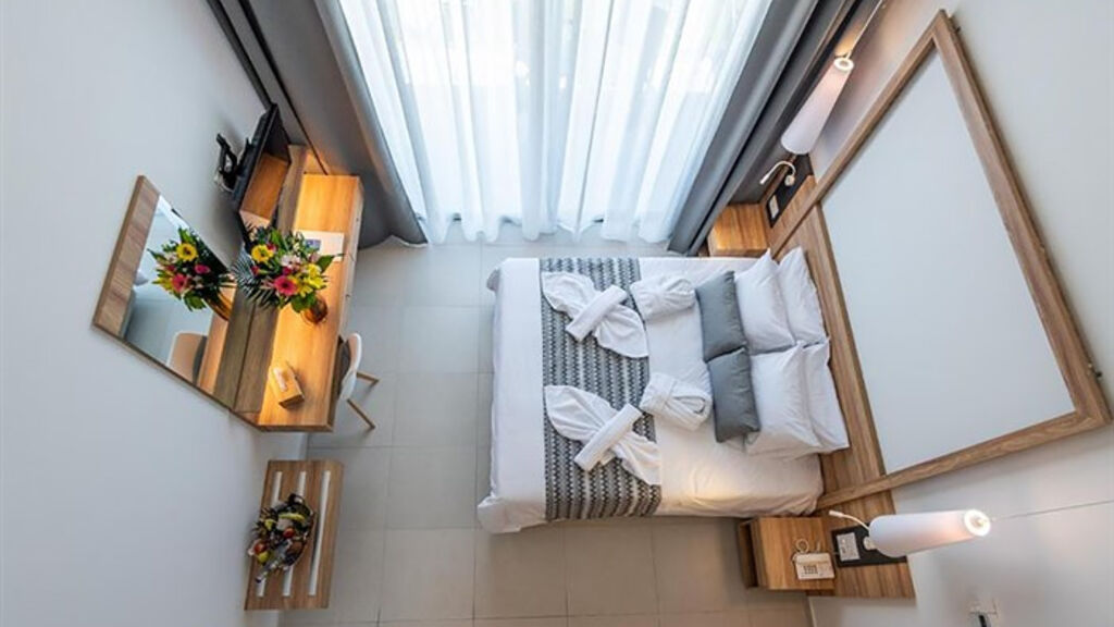 Pokoje: Luxusně zařízené dvoulůžkové pokoje a dvoulůžkové pokoje s možností až 2 přistýlek typ Family jsou vybaveny klimatizací, telefonem, SAT-TV, trezorem, minilednicí (zdarma), setem na přípravu kávy a čaje, WiFi připojením (zdarma), koupelnou s vanou nebo sprchou a WC, fénem a balkonem nebo terasou. Za příplatek pokoj s přímým výhledem na moře. 4 osoby lze ubytovat pouze v rodinném pokoji za příplatek.