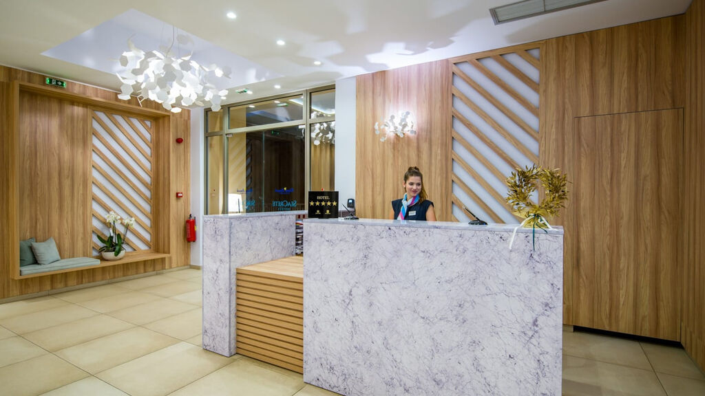 Vstupní hala s recepcí, bar, restaurace, bazén, bazén s oddělenou částí pro děti, vnitřní bazén, minimarket. Lehátka a slunečníky u bazénu zdarma. Wi-Fi připojení ve všech prostorách hotelu, včetně pokojů, zdarma.