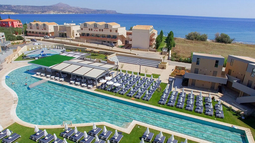 Poloha:Oblíbený, rodinný, luxusní hotel s příjemnou atmosférou a kvalitními službami s kapacitou 115 pokojů se nachází přímo u krásné písečné pláže oceněné Modrou vlajkou kousek od malebné vesnice Kalyves, jež je označována za jedno z nejzelenějších míst na Krétě ve vzdálenosti cca 20 km od letiště Chania. Restaurace, bary, nákupní centrum se nachází cca 2 km od hotelu, autobusová zastávka cca 100 m od hotelu.