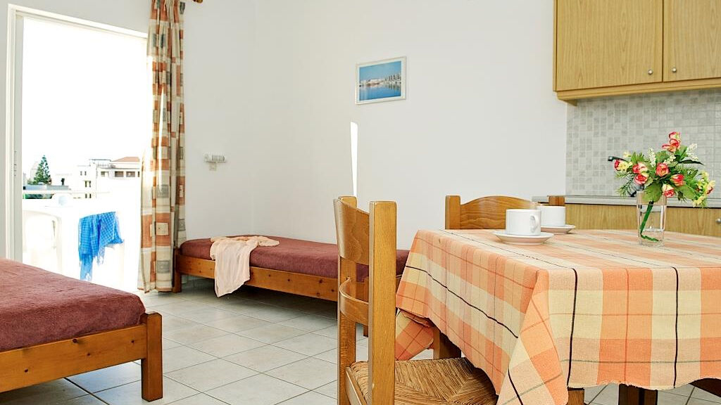 pokoje typu apartmán a studio, balkon/terasa, klimatizace (za poplatek), TV, lednice, kuchyňský kout, telefon, koupelna se sociálním zařízením, trezor (za poplatek)