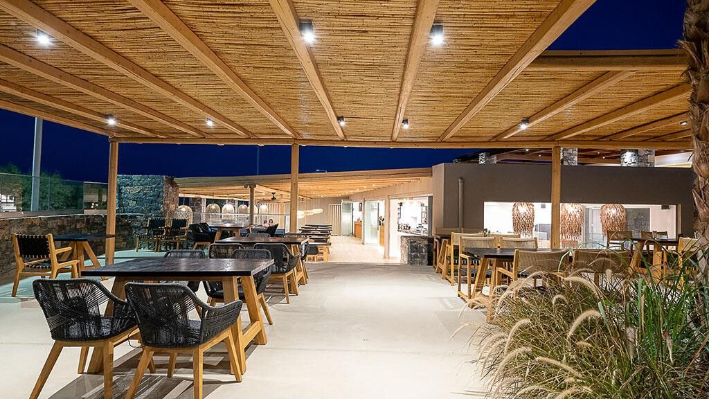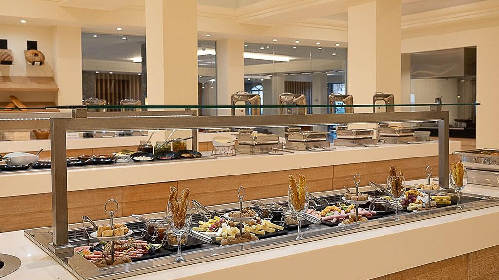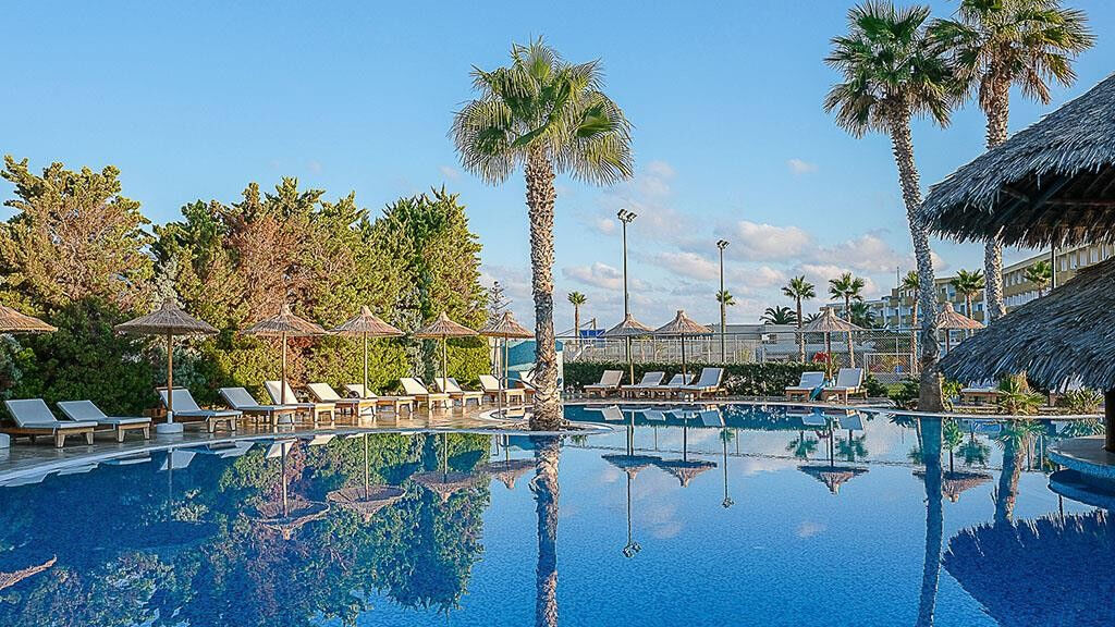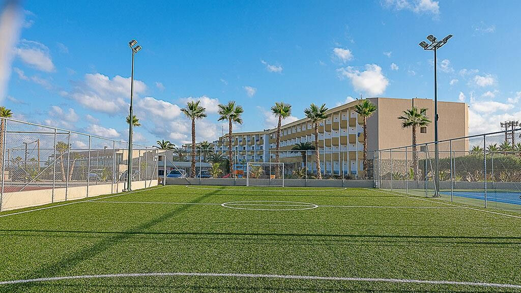 Vybavení hotelu:vstupní hala s recepcí, hlavní restaurace, lobby bar, bar u bazénu, obchod, 2 venkovní bazény (slaná a sladká voda, lehátka a slunečníky zdarma, osušky za zálohu 20 EUR, výměna možná každý druhý den), vnitří bazén, 2 dětské bazény, výtah.