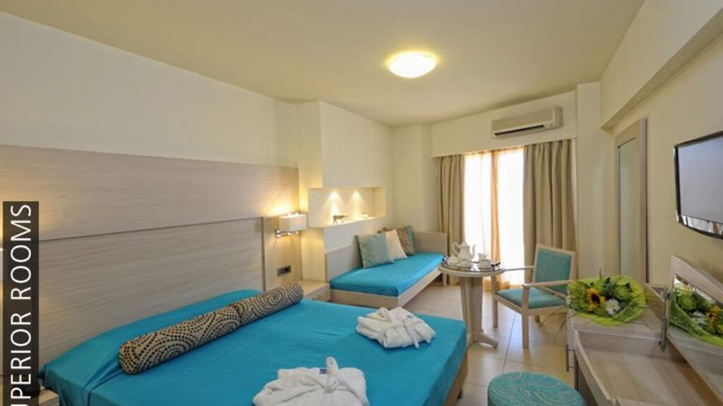 Vybavení pokojů:Dvoulůžkový pokoj, Superior, Výhled zahrada: individuálně ovládaná klimatizace, telefon, koupenla/WC (vysoušeč vlasů), TV/sat., minilednička, trezor na recepci (za poplatek cca 35 EUR/týden), balkon nebo terasa.