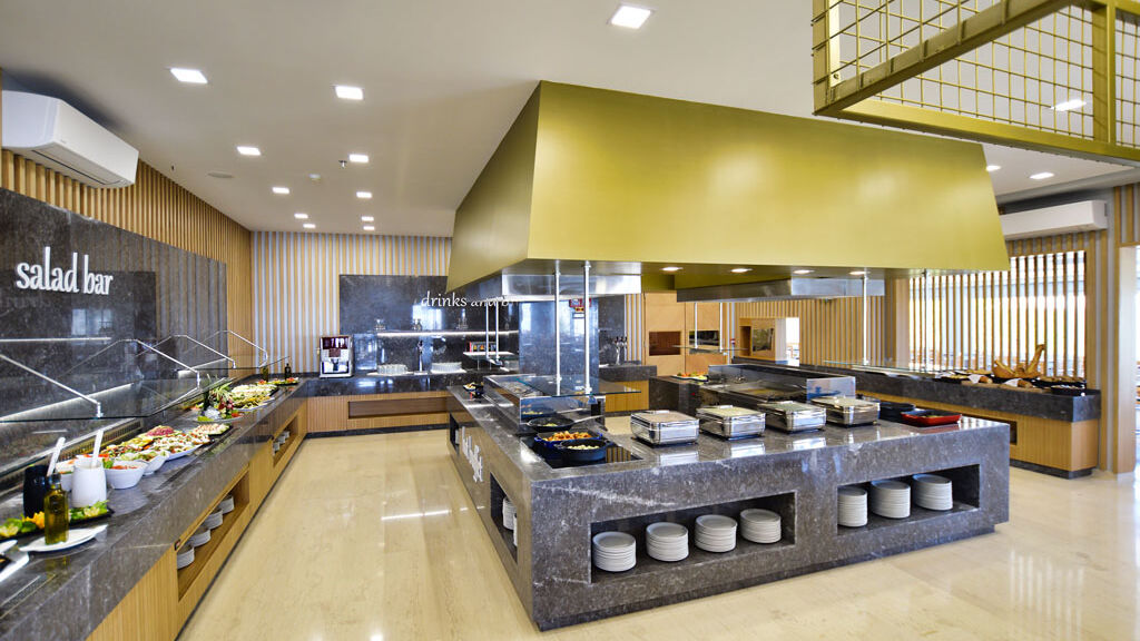 All inclusive: časné snídaně na vyžádání (05:00 – 07:15), bufetové snídaně (07:15 – 09:30), pozdní kontinentální snídaně (09:30 – 10:00 v lobby baru), bufetové obědy (12:30 – 14:00), bufetové večeře (19:00 – 21:30), občerstvení (11:00 – 12:00 a 15:00 – 16:00), odpolední čaj/káva se zákusky (16:00 – 17:00), místní alkoholické a nealkoholické nápoje (10:00 – 23:00).