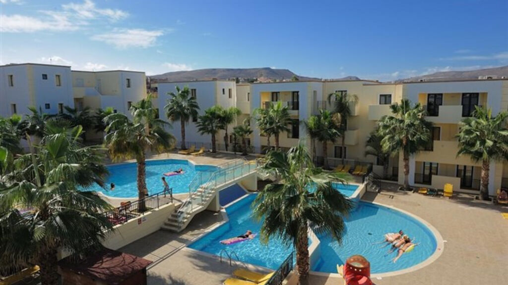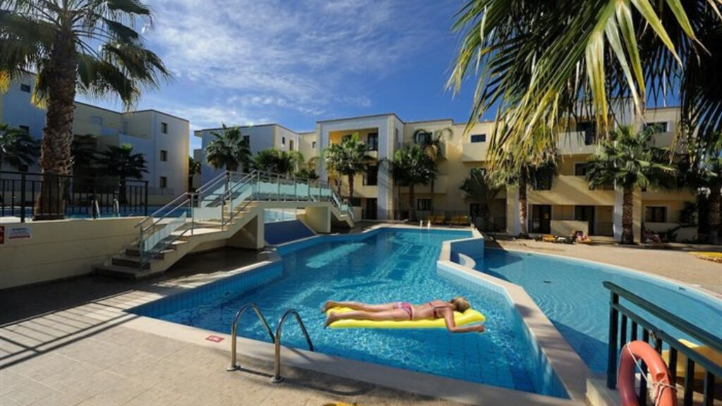 Hotelový komplex s příjemnou atmosférou se skládá z hlavní budovy, několika přilehlých budov a aquaparku. Písečná pláž s pozvolným vstupem do moře je vzdálená cca 400 m. Centrum letoviska Gouves se nachází pouhých cca 500 m od ubytovaní, naleznete zde mnoho obchůdků, restaurací a typických řeckých taveren. Tento hotel doporučujeme zejména rodinám s dětmi.