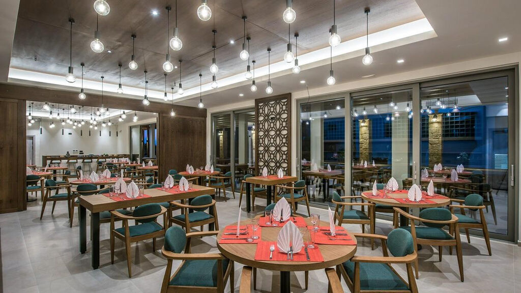 - Hlavní restaurace Dionysos: snídaně 7.30-10.30, pozdní snídaně 10.30-11.00, obědy 12.30-14.30 a večeře 18.30-21.30 formou bufetu. U snídaně nealkoholické nápoje, káva, čaj, u oběda a večeře nealkoholické nápoje, pivo, víno.