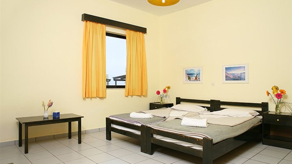 Menší hotelový komplex se nachází u oblázkové pláže, od které je oddělen místní komunikací a cca 400 m od písečné pláže s pozvolným vstupem. Hotel se skládá z několika menších budov, nabízí příjemné posezení v restauraci s výhledem na moře. Centrum letoviska Gouves je vzdáleno cca 500 m, kde naleznete množství obchodů, restaurací, barů a taveren.