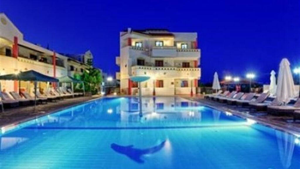 Luxusní hotelový areál postavený v krétském stylu prošel celkovou rekonstrukcí a zejména děti potěší novým aquaparkem. Skládá se z několika menších budov a nachází se v oblíbeném letovisku Gouves (Řecko, Kréta) jen 100 m od písečné pláže oddělené místní komunikací. Na nedaleké promenádě naleznete obchody se suvenýry, taverny, kavárny a bary. Klientům je k dispozici vstupní hala s recepcí, internetový koutek za poplatek, restaurace s příjemným venkovním posezením, barbecue restaurace Asteria, střešní restaurace, snack bary, pool bar, 4 venkovní bazény (z toho jeden 120 m dlouhý), 1 dětský a 1 krytý bazén. Lehátka a slunečníky jsou zde zdarma (na pláži za poplatek, plážové osušky jsou také za poplatek). Hotel pořádá animační programy a zábavné večery. K dispozici je fitness, stolní tenis, kino, diskotéka. Ti nejmenší si užijí hlavně nového aquaparku nebo se zabaví na hřišti, v dětském koutku anebo při návštěvě místního mořského akvária. Za poplatek je možno si zahrát kulečník, stolní hokej, šipky, využít saunu či wellness. Doporučujeme i náročnějším klientům, kteří ocení kvalitní služby all inclusive a také rodinám se 2 dětmi.