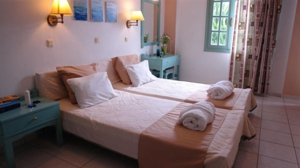 hotel nabízí 46 pokojů, zejména studií až pro 2 osoby vybavené koupelnou s WC, ložnicí s kuchyňským koutem a balkonem nebo terasou, dále hotel nabízí apartmány se 2 místnostmi a to ložnicí a obývací částí s kuchyňským koutem, které jsou vybavené také balkonem nebo terasou. Všechny typy ubytování mají trezor, klimatizaci, TV, telefon a 2 z pokojů jsou zařízeny pro vozíčkáře (na vyžádání).