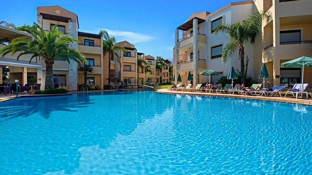 Základní informace:Moderně vybavený hotel se nachází v letovisku Stalos v západní částí Kréty, vzdálen 21 km od letiště v Chania. Hotel je zasazen v udržované zahradě a vybaven dvěma bazény s lehátky a slunečníky sloužícími k odpočinku během dne. Okolí hotelu nabízí možnosti nákupů i posezení v tradičních řeckých tavernách. Hotel poskytuje ubytování v komfortně zařízených studiích a apartmánech, nejen díky čemuž je vhodným místem pro rodinnou dovolenou.