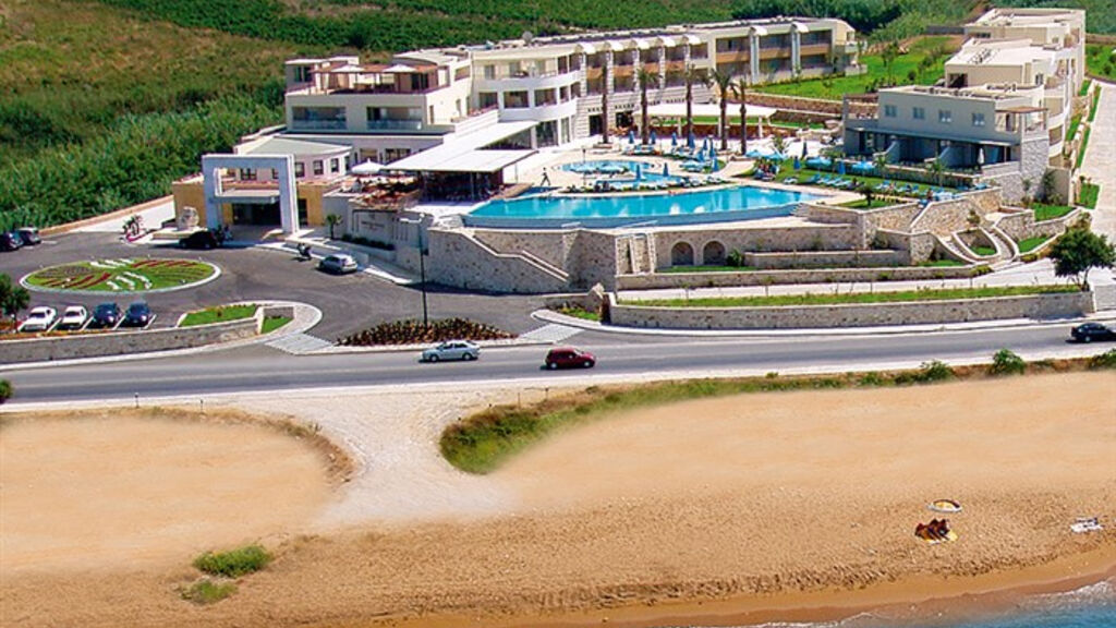 Luxusní hotelový resort je situován na mírně vyvýšeném místě, odkud nabízí panoramatický výhled na moře. Hotel se nachází v letovisku Stalos, které leží mezi známějšími letovisky Platanias a Agia Marina. Od písečné pláže je oddělen pouze pobřežní komunikací. Na pláž se dostanete hotelovým podchodem. Do nedalekého historického města Chania s množstvím taveren, barů a obchůdků se dostanete pravidelnou autobusovou linkou; zastávka autobusu je přímo u hotelu. Hotel je vhodný pro náročnější klienty.