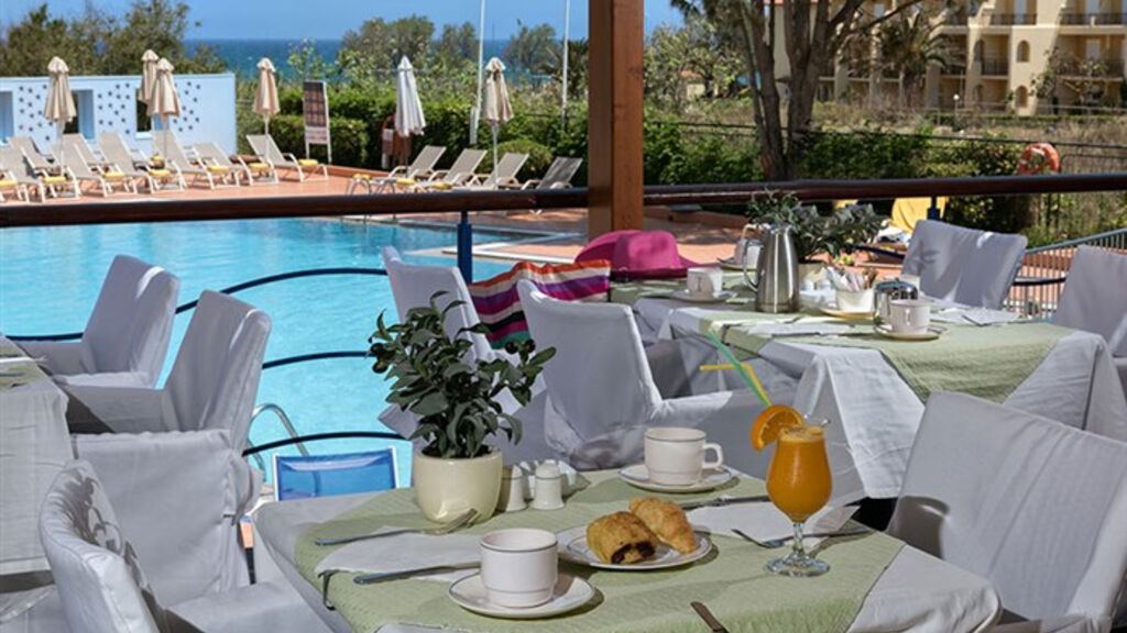 - Restaurace u pláže: 12.00-15.00 oběd formou lehkého bufetu (saláty, pizza, burger, těstoviny atd.), 11.00-18.00 lehké občerstvení, zákusky, 19.00-21.30 večeře formou bufetu (řecká kuchyně), večeře 3x v týdnu.