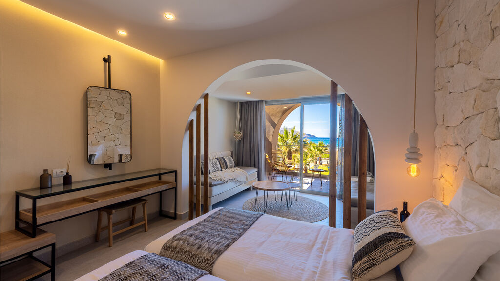 dvoulůžkové pokoje Superior s možností přistýlky s výhledem do zahrady, dvoulůžkové pokoje Superior s možností přistýlky s bočním výhledem na moře, dvoulůžkové pokoje Superior s možností přistýlky s výhledem na moře, dvoulůžkové pokoje Junior Suite až pro 4 osoby s výhledem do zahrady, koupelna s toaletou, fén , klimatizace, Wi-Fi, lednice, kávovar, trezor , SAT/TV, telefon, balkon nebo terasa, dětská postýlka na vyžádání zdarma ,