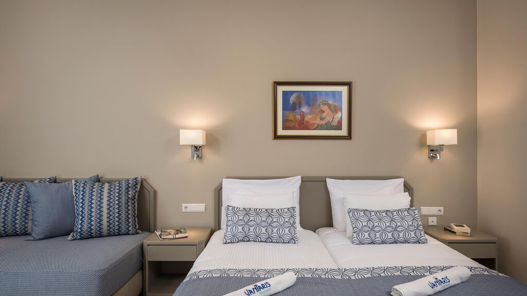 Vybavení hotelu:Bazén, dětský bazén, terasa na slunění s lehátky a slunečníky zdarma. Veškeré další vybavení v sesterském hotelu Vantaris Palace: vstupní hala s recepcí, restaurace, bar s terasou, minimarket. Venku bazén, dětské brouzdaliště.