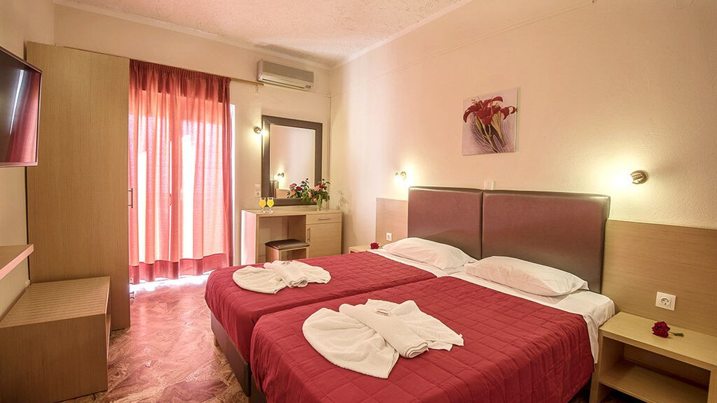Tříhvězdičkový, udržovaný hotel byl postaven v roce 2000. Pokoje byly zrenovované v roce 2014. Hotel se skládá ze 2 budov, nabízí prostorné lobby, 24h. recepci, restaurace v blízkosti pláže – stravování formou švédských stolů, řecká a mezinárodní kuchyně, k dispozici židličky pro děti, dětské menu, vegetariánské menu, bar u bazénu, obchod s dárkovými předměty, terasa s výhledem na moře, WiFi připojení ve veřejných prostorách zdarma.