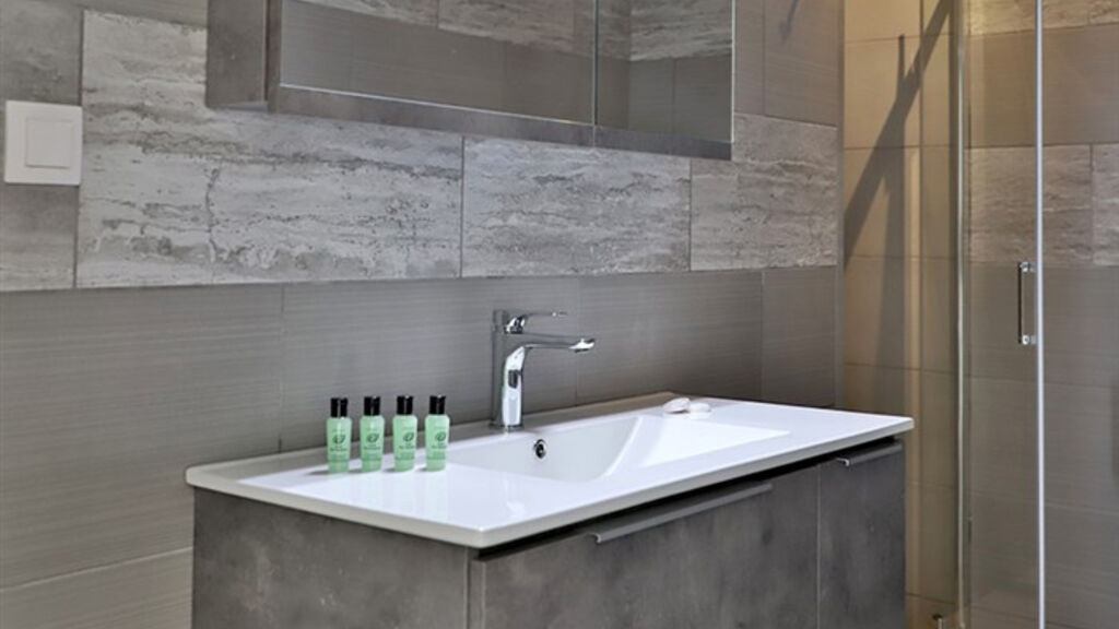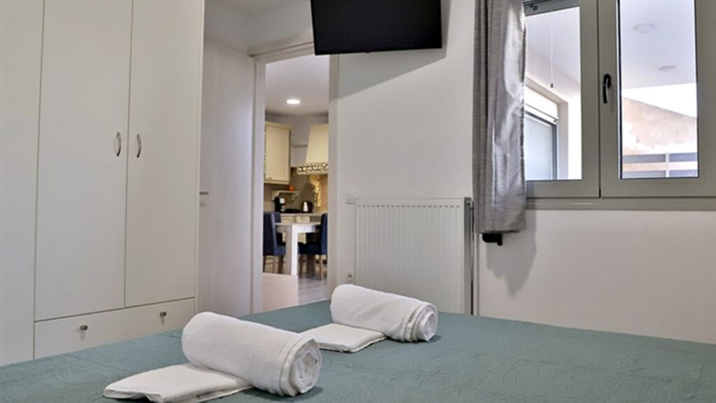 dvoulůžková studia s možností přistýlky, apartmány až pro 5 osob (3 místnosti), koupelna s toaletou, fén, kuchyňský kout (vařič, lednice, základní nádobí), klimatizace, SAT/TV, Wi-Fi, balkon nebo terasa,