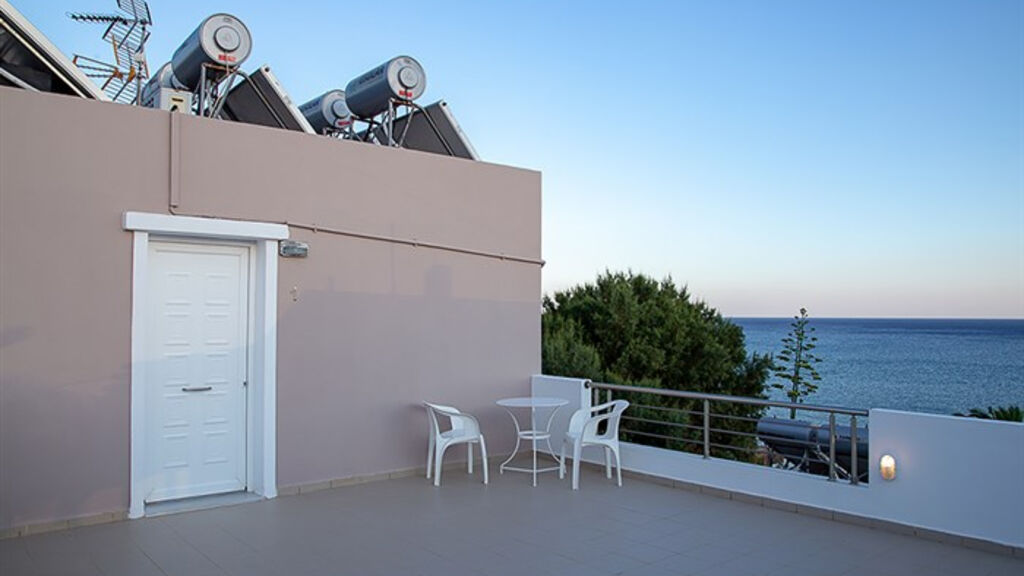 Komplex studií se nachází v letovisku Makris Gialos, přímo u krásné písečné pláže místy s oblázky. Vstup do moře je zde pozvolný. Studia jsou tvořena třemi samostatně stojícími budovami. Budovy jsou zasazeny do vzrostlé zahrady s palmami a stromy. Občerstvit se můžete přímo v areálu, součástí zahrady je také snack bar.