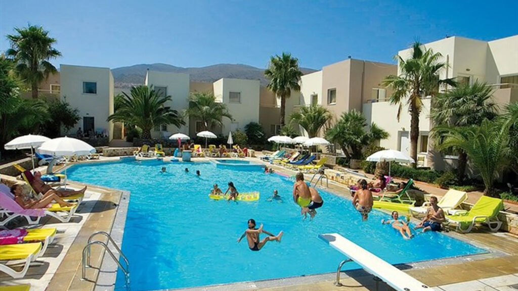 Zrekonstruovaný aparthotel se nachází necelých 10 minut chůze od centra oblíbeného letoviska Malia. Od překrásné písečné pláže s pozvolným vstupem do moře ho dělí 180 m. Tento velice příjemný hotel je díky svému zázemí ideální pro rodiny s dětmi, výhodou je také blízkost živého letoviska s nepřeberným množstvím taveren, obchůdků a barů.VYBAVENÍ: Recepce, internet za poplatek, Wi-Fi zdarma (12 hodin/pobyt) u bazénu a recepce, 2 restaurace, snack bar, bar u bazénu, 3 bazény, z toho 2 s oddělenou dětskou částí (lehátka a sluneční zdarma, na pláži za poplatek), billiard, dětské hřiště.