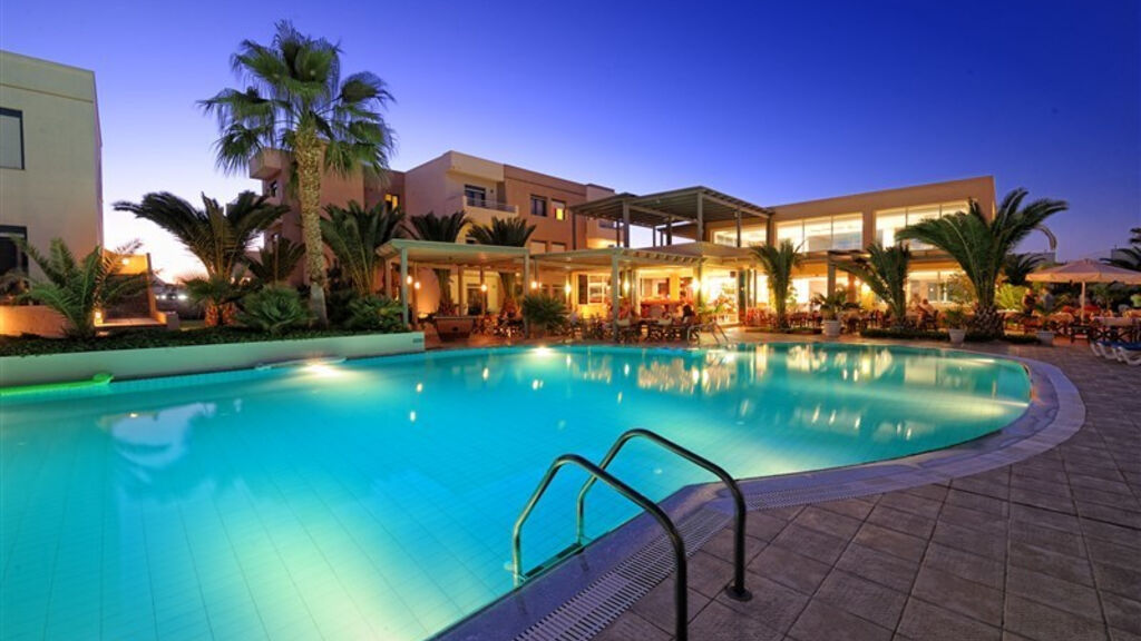 Oblíbený hotelový komplex nacházející se v krásné zahradě necelých 5 minut chůze od centra oblíbeného letoviska Malia (Řecko, Kréta) překvapí nově postaveným akvaparkem. Od překrásné písečné pláže s pozvolným vstupem do moře ho dělí pouhých 250 m. Tato pláž se širokou nabídkou vodních sportů patří k nejvyhledávanějším na ostrově. Hostům je k dispozici recepce s Wi‑Fi připojením zdarma, 2 restaurace, pool bar, 3 sladkovodní bazény, z toho 2 s oddělenou dětskou částí, slunečníky a lehátka zdarma, dětské hřiště, miniklub, plážový volejbal. Za poplatek je sauna, parní lázeň a kulečník. Doporučujeme nejen rodinám s dětmi, ale i těm, kteří hledají ubytování v dosahu koupání s možností nedalekého nočního vyžití.