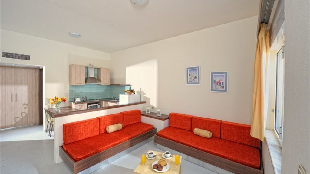 Rodinné apartmány s možností až 2 přistýlek (2 místnosti, max. obsazenost 4 dospělé osoby), klimatizace centrální (6 €/den), lednice, kuchyňský kout (na vyžádání), TV, Wi-Fi, telefon, sejf (20 €/týden), fén, koupelna, balkon nebo terasa.