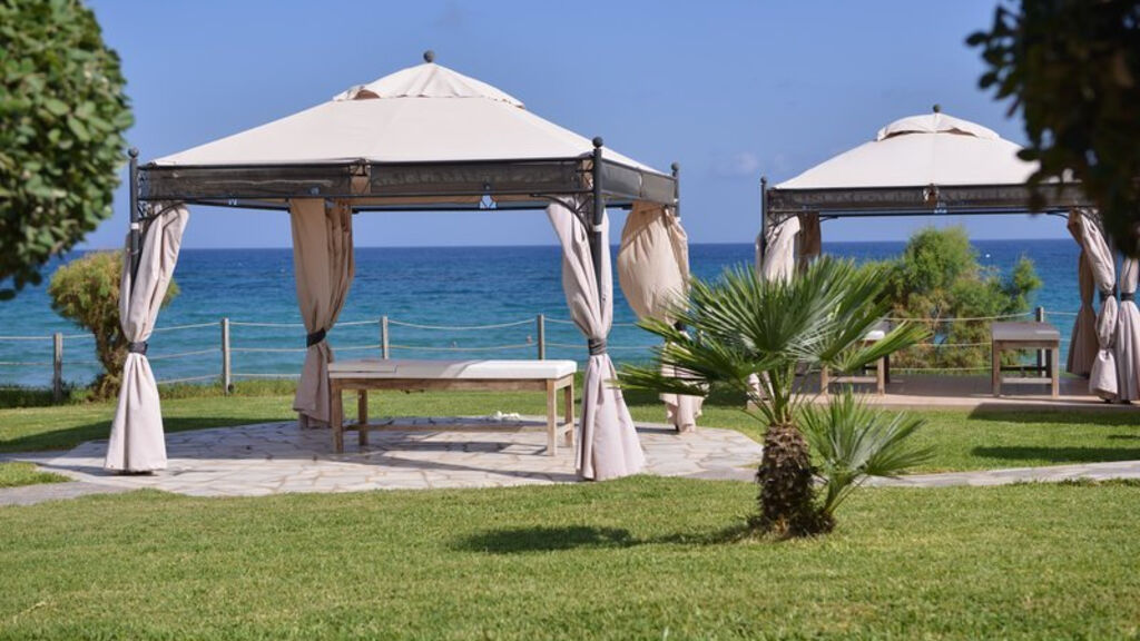 Velmi elegantní hotelový resort disponuje 335 pokoju rozmístěnými v hlavní budově a několika stylových patrových vilkách rozmístěných v krásné 2 tenisové kurty pečlivě udržované zahradě. Klientům je k dispozici prostorná vstupní hala s recepcí, směnárnou a lobby barem, WiFi připojení ve vnitřních prostorách hotelu zdarma, TV místnost, hlavní restaurace, taverna, snack bar, pool bar, mini market, zlatnictví, krytý bazén, dětský bazén, čtyři venkovní sladkovodní bazény (lehátka a slunečníky zdarma), pool bar, a la carte restaurace (řecká i mezinárodní kuchyně), fitness centrum, , hřiště pro plážový volejbal, potápěčská škola, internetový koutek (za poplatek), dětské hřiště, parkoviště, moderní lázeňské a relaxační centrum a sportoviště.