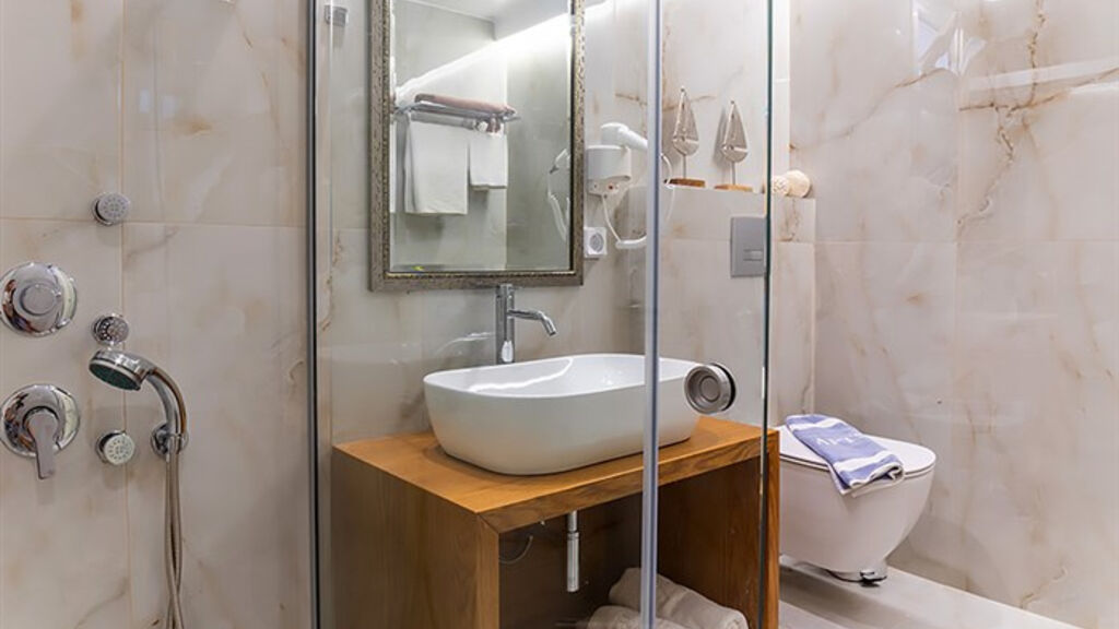 dvoulůžková studia, dvoulůžková studia s možností přistýlky, dvoulůžková studia Deluxe , koupelna s toaletou, fén, kuchyňský kout (lednice, vařič, varná konvice, mikrovlnná trouba), klimatizace (za poplatek cca 10 €/den), trezor (za poplatek cca 3 €/den), SAT/TV, Wi-Fi, telefon, balkon nebo terasa, dětská postýlka na vyžádání zdarma,