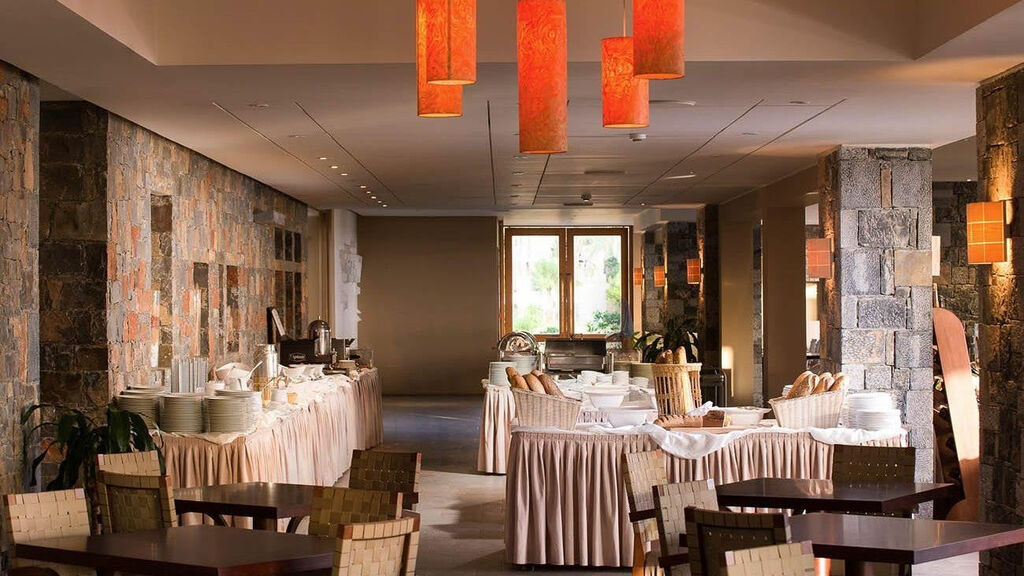 Hotelový komplex tvořen hlavní budovou a bungalovy v zahradě. Vstupní hala s recepcí, bar s terasou, restaurace, rybí taverna u moře, snack bar, konferenční místnost, kavárna a minimarket. V zahradě bazén, dětský bazén a brouzdaliště, terasa na slunění s lehátky a slunečníky zdarma.