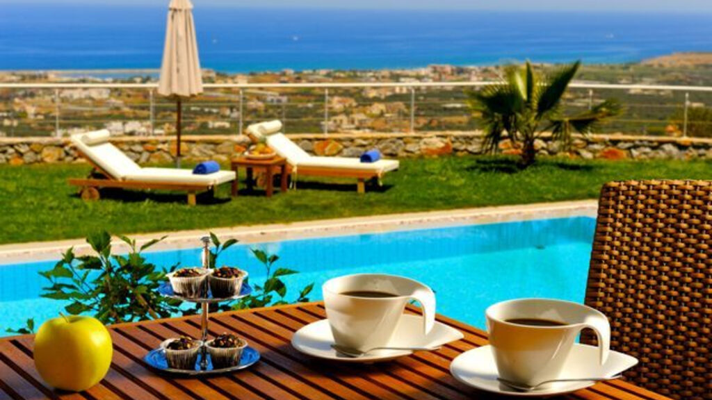 luxusní hotel s vilami a apartmány na kopci se nachází v letovisku Malia, 2 min jízdy od pláže a 40 km od letište v Heraklionu.