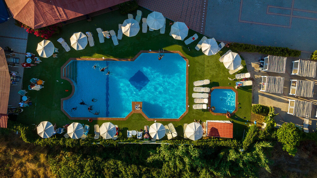 Služby all inclusive zahrnují plnou penzi formou bufetu (snídaně od 8:00 do 10:15 h, obědy od 13:00 do 14:15 h, večeře od 20:00 do 21:15 h), neomezenou konzumaci vybraných místních alkoholických nápojů (ouzo, raki, pivo, víno, omezený výběr koktejlů v určenou dobu) a nealkoholických nápojů od 10:30 do 23:00 h. Uvedené časy jsou orientační.