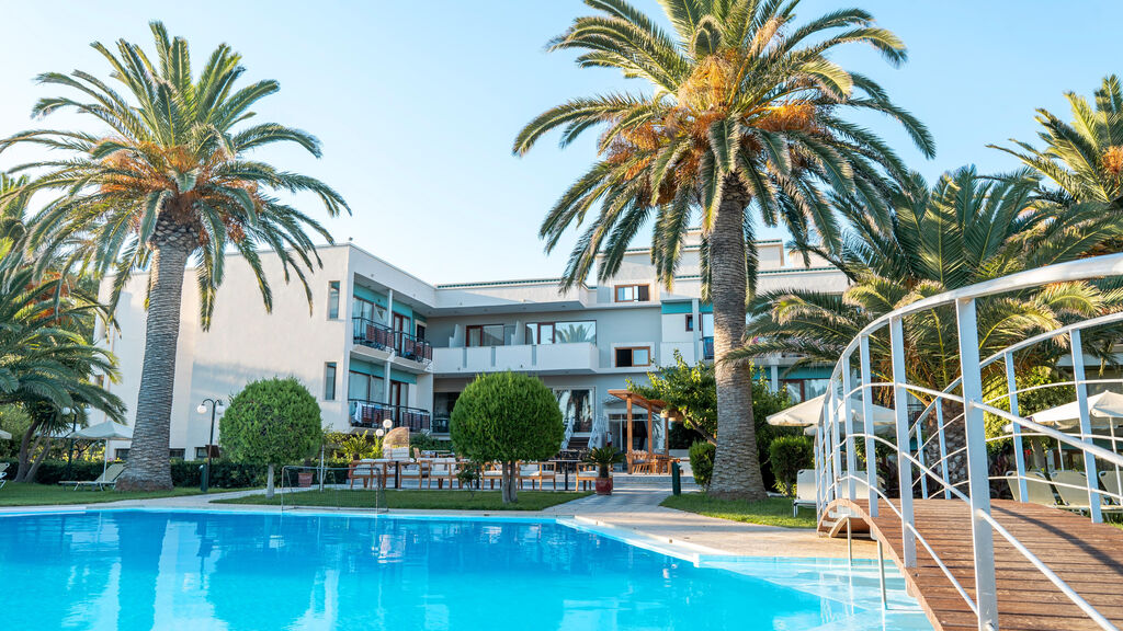 Základní informace:Zrekonstruovaný rodinný hotel se nachází v letovisku Rethymno kousek od dlouhé písečné pláže, podél které se dostanete pěšky do centra Rethymna. Hotel je obklopen nádhernou zahradou s palmami a k dispozici má velký bazén, dětský bazén a hřiště, 2 bary, restauraci s posezením v zahradě i tenisový kurt. V okolí naleznete oblíbené řecké taverny, bary a milovníci koní ocení 300 metrů vzdálený jezdecký klub, kde si mohou vybrat z několika možností vyjížďky na koni. Do centra Rethymna se dostanete také autobusy přijíždějícími každých 30 minut ze zastávky vzdálené 100 metrů od hotelu.