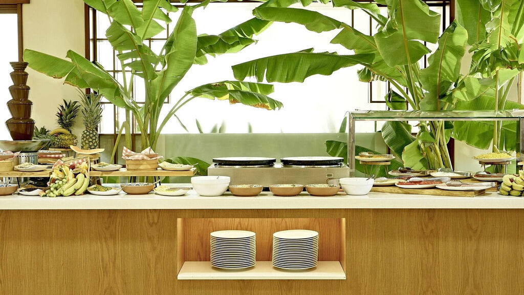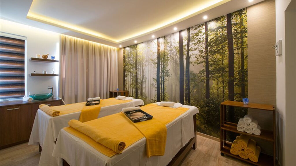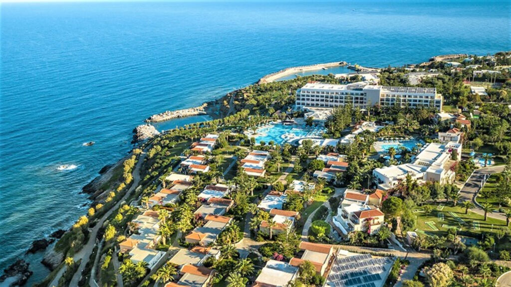 Vybavení hotelu:454 pokojů rozdělených mezi hlavní budovu a bungalovy v zahradě. Vstupní hala s recepcí, hlavní restaurace, italská restaurace, snack bar, taverna, lobby bar, vnitřní bazén, konferenční místnost, minimarket. V zahradě 5 bazénů (z toho 3 s mořskou vodou), bazén pro děti, bar u bazénu, terasa na slunění, lehátka a slunečníky zdarma, osušky oproti kauci.