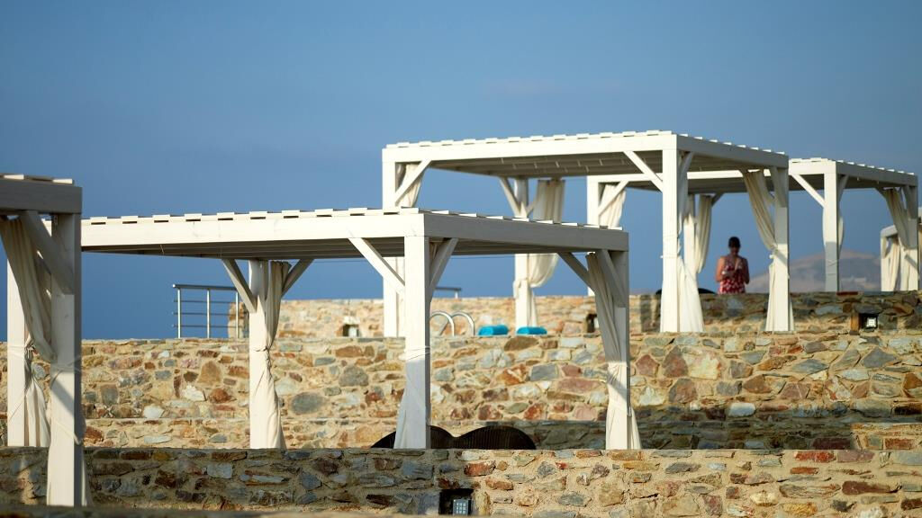 Hlavní budova a několik vedlejších budov, vstupní hala s recepcí, hlavní restaurace s terasou, restaurace à la carte (italská, polynéskáa řecká taverna), lobby bar. Venku 3 bazény s mořskou vodou, terasa na slunění, lehátka, slunečníky a osušky zdarma, bar u bazénu.