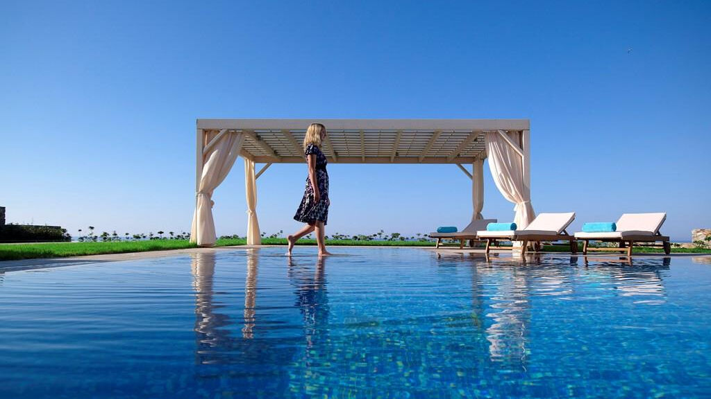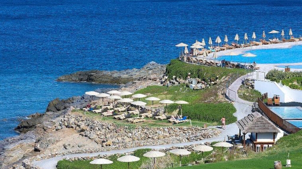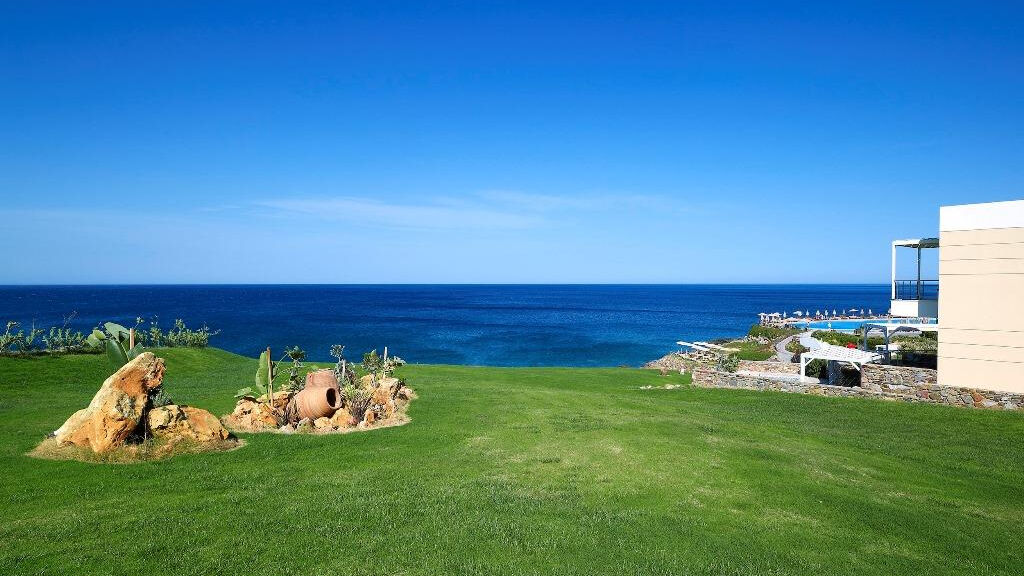 Rozlehlý luxusní hotelový resort Sensimar Royal Blue Resort and Spa v upravené zahradě, je jedním z nejmodernějších hotelů na Krétě. Elegantním areál s bazény a vodopády nabízí nádherné výhledy na Egejské moře. Ubytování lze zajistit pro osoby od 15ti let.