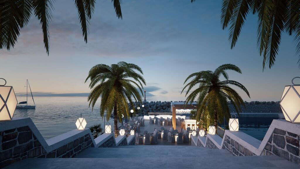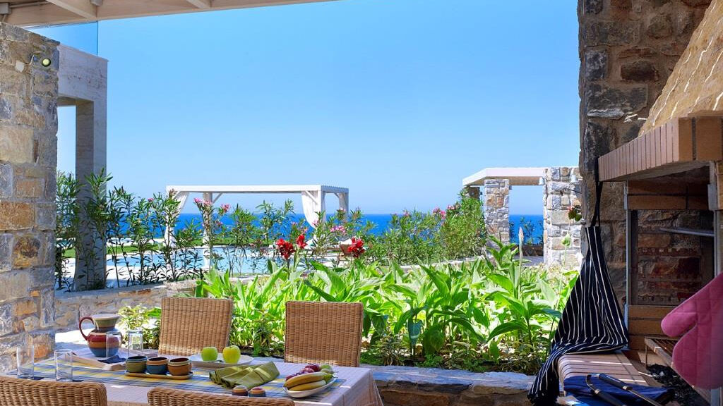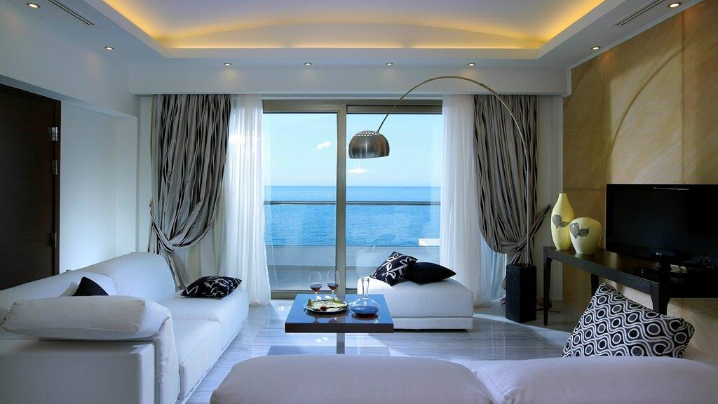 hlavní restaurace Symposium, italská a asijská restaurace, krétská taverna, Gallery chic art restaurace pouze pro hosty ubytované v suitách několik barů – pool bar, lobby bar a Cigar bar s širokou nabídkou doutníků a whisky, sushi bar, kafenion, business centrum, knihovna, minimarket, butik, klenotnictví, půjčovna aut